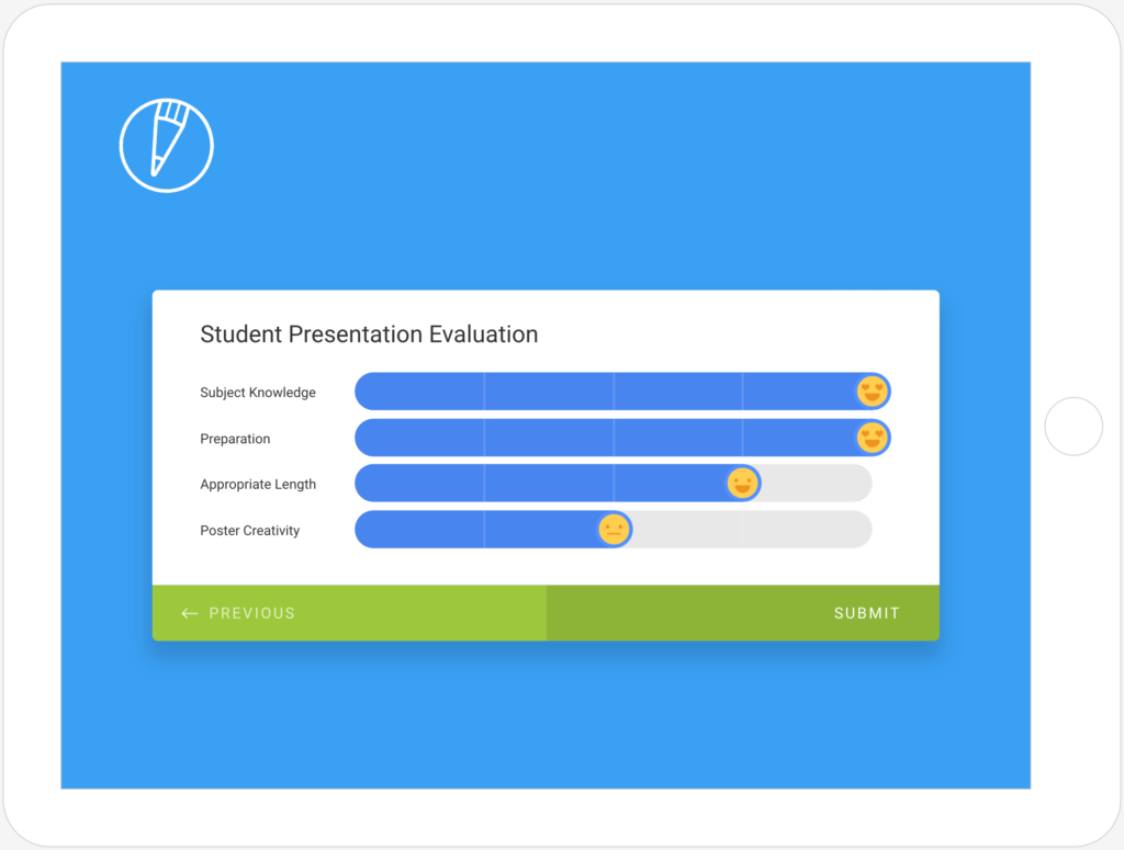 JotForm Cards makes it incredibly easy to evaluate a student presentation while you sit in the back of the classroom with your tablet or phone. You can use standard input tables that include numbers, or you can use something more expressive like an emoji slider, which sometimes makes more sense for more subjective grading.