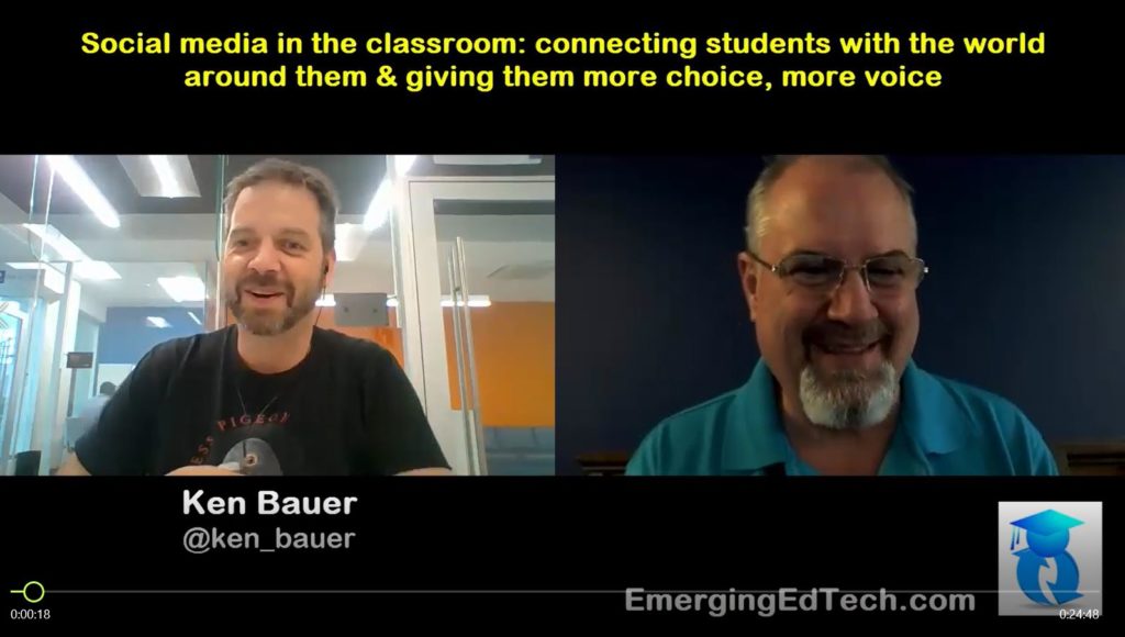 I recently sat with Ken Bauer and had a great chat about using social media in courses to achieve numerous benefits for our students. I know I am not the only professional who has become rather frustrated with social media, especially in this era of fake news, astroturfing, etc., so it is very refreshing to hear an experienced educator discuss how he has been using social media in a very positive way with his students for years.