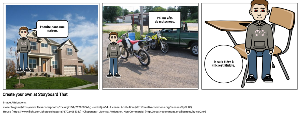 I want to share one example here of how powerful student voice with Storyboard That was for one of my students and how this program can help engage students of different abilities and interests. He was a 6th grade Beginning French student requiring IEP accommodations, primarily in written and spoken language, and he also had some attention-deficit issues that caused problems maintaining learning engagement. I remember so vividly how proud he was that he was able to create his storyboard all in French and then record himself saying the French words.
