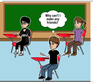 Many schools are implementing social emotional learning as part of their program to help build relationships and confidence while reducing bullying. Here is an example of a scenario a student shared to show what some students may feel. His group discussed and brainstormed possible ways classmates could respond, and then created new storyboard cells together to show how this story could end in a positive way.Â