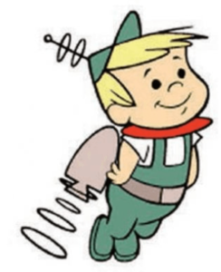 Below we see Elroy flying via his futuristic Jetpack. We can do that.