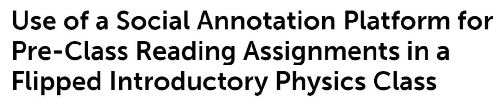 In this study, several educators* had students work with the social annotation platform to read digital textbook content and interactively annotate and discuss the material before each class. The introductory physics course that the study focused on leveraged flipped learning, with pre-class reading assignments replacing lectures and serving as the primary mechanism for information transfer. Of course, reading textbook content prior to some classes is also common in traditional learning, so the implications here can apply to numerous teaching methodologies.