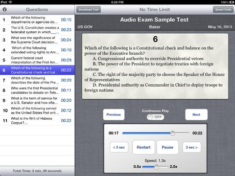 The interface of the app is intuitive and easy to use. A few taps can pull up any question the students may want; questions can also be replayed, paused, and skipped, giving students complete control over their exams and the order in which they may want to proceed.
