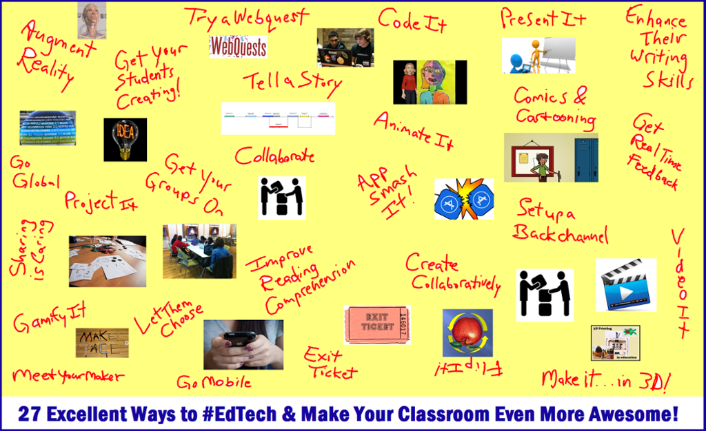 I decided to use the image I created for this recent article, 27 Meaningful Ways to Use EdTech & Make Your Classes Extra Awesome This Year, as my test case, converting the graphic into an interactive learning resource for teachers to explore.
